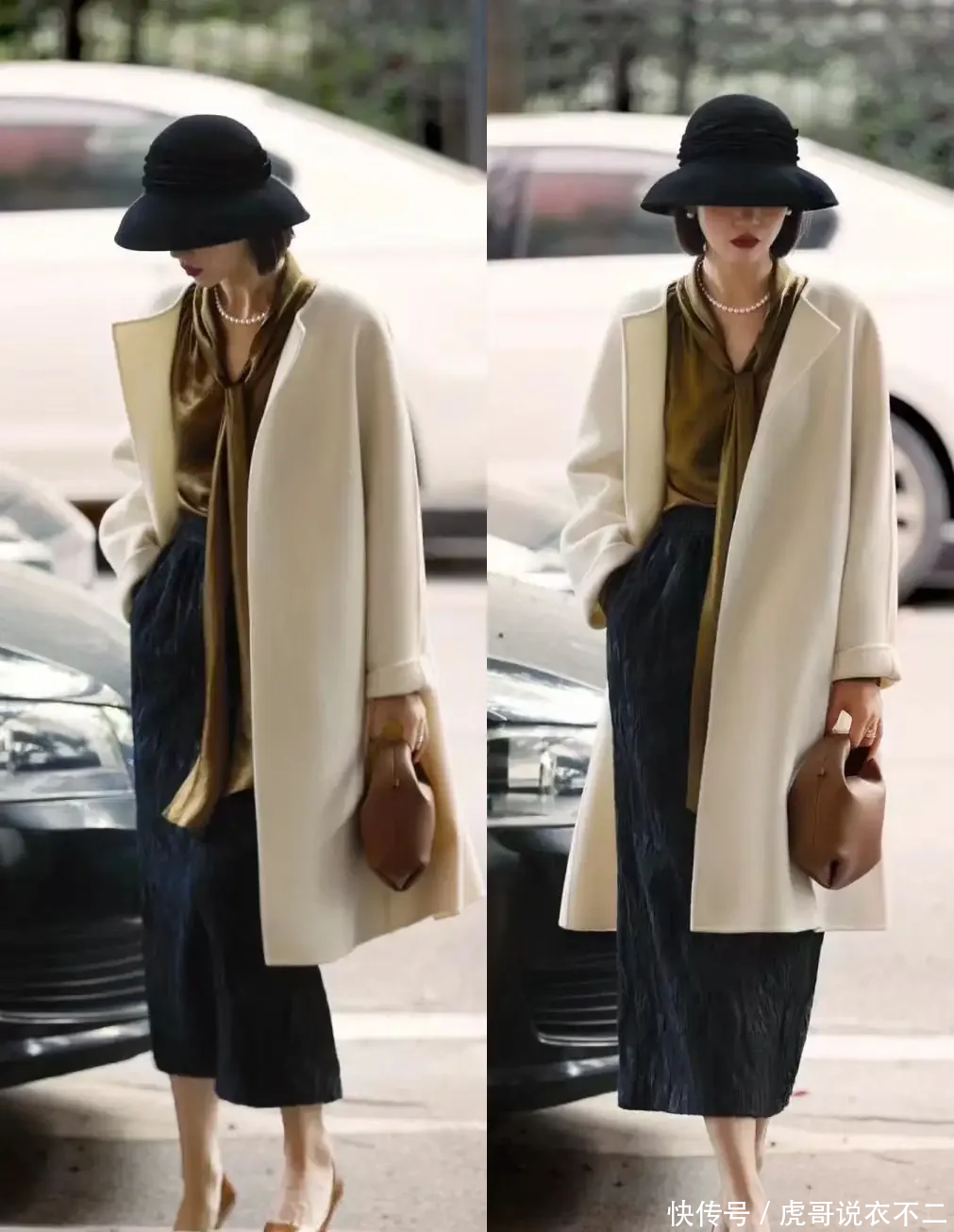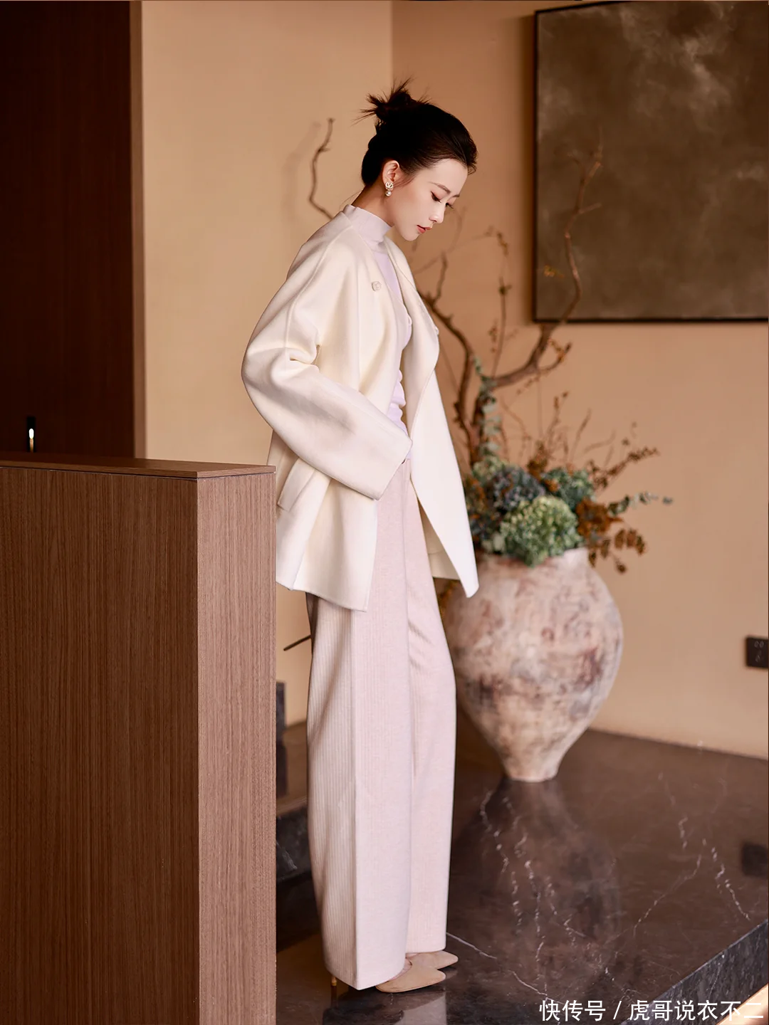 例如,一款白色大衣搭配同色系高领衫的新中式穿搭,就展现出了中年女性的温婉与雅致。大衣上的盘扣设计,不仅体现了中国传统服饰的精髓,还为整体造型增添了几分复古风情。这样的穿搭,既符合中年女性的沉稳气质,又不失时尚感。