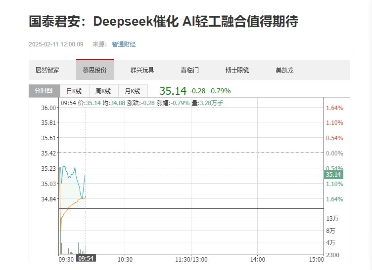 国泰君安在研报中强调了Deepseek模型对端侧产品渗透及产品力提升的加速作用。慕思敏锐地捕捉到了这一趋势,将AI技术深度融入其家居产品线中,特别是睡眠领域,慕思不仅提升了产品的智能化水平,还打开了销量的新空间,使得AI轻工融合下的产品表现备受期待。